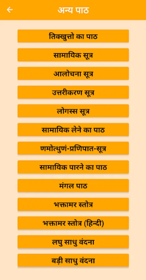 This app will offer you Anupurvi Paath in a traditional way and in the local language. Other Paaths are also available in the app like Shaanti Paath, Navkar Mantra, 9 Samayik Paaths, Mangal Paath, Bhaktamar in Sanskrit & Hindi, 12 Bhavana, Meri Bhavana, Laghu Sadhu Vandana, Badi Sadhu Vandana, Chintamani Stuti and many more. Write to us for adding even more.