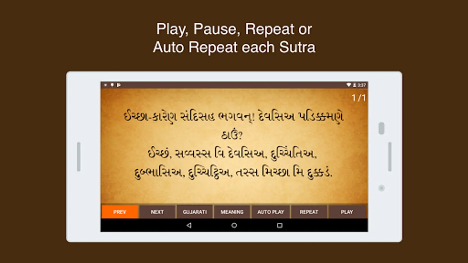 - Play, Pause, Repeat or Auto Repeat each sutra.