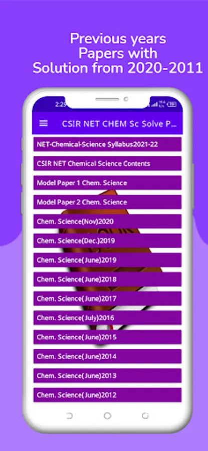 CSIR NET CHEM Sc Solve Papers App is For Aspirants of UGC-CSIR NET Exam. In this app CSIR NET CHEMICAL SCIENCE Previous years Solved Question papers are available with explanation in English.