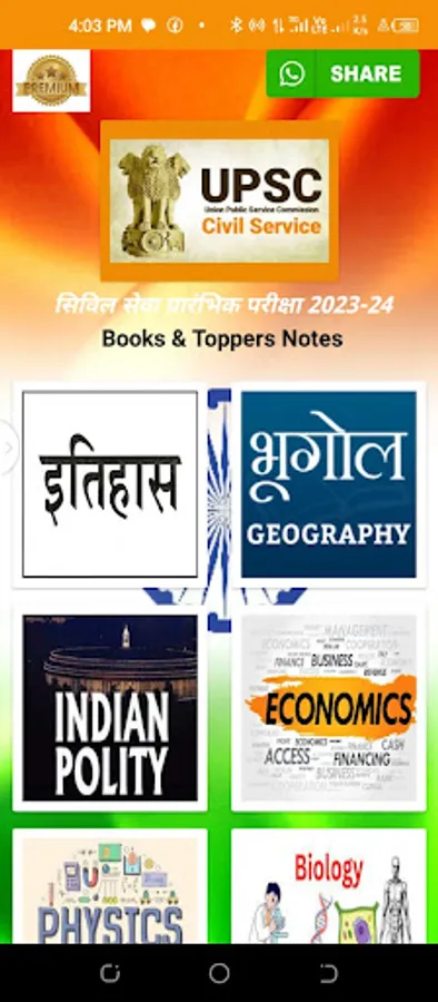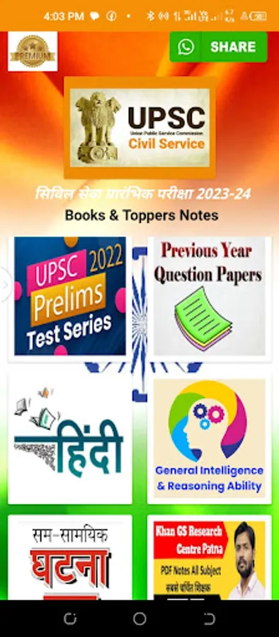 "UPSC Prelims Notes Premium" is the definitive app for aspirants preparing for the UPSC (Union Public Service Commission) exam. With an extensive collection of study materials, this app covers a wide range of subjects including History, Polity, Economics, Hindi, English, Biology, Chemistry, Physics, and much more.