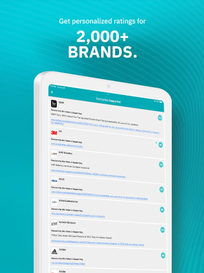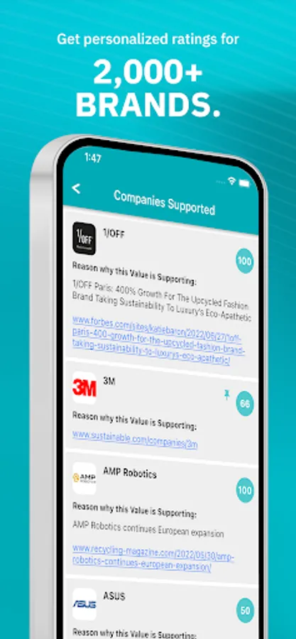 2. Receive personalized ratings for 2,000+ brands indicating how aligned they are with your values.