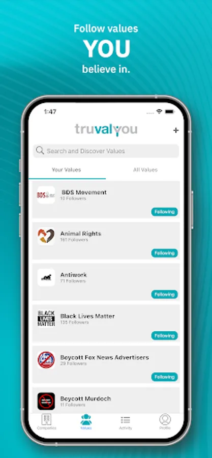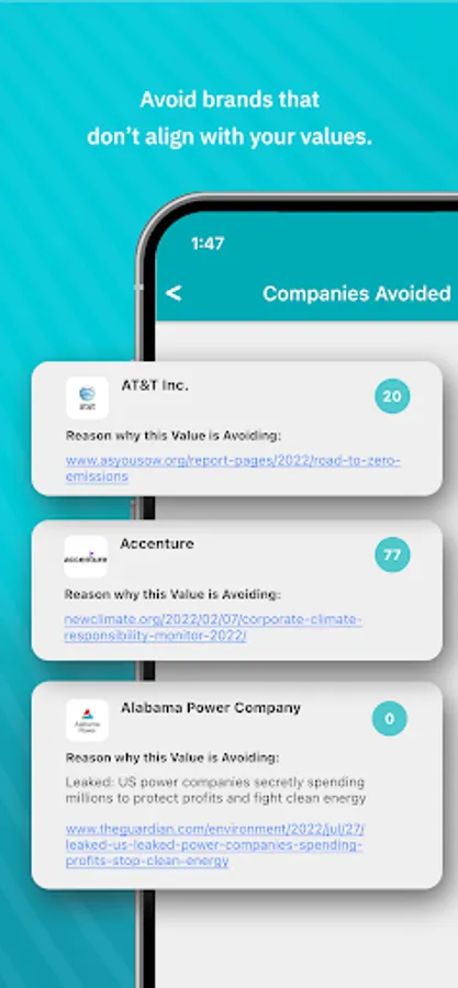 We make it easy to support brands that align with your values and avoid the ones that do not, all in one easy to use app.