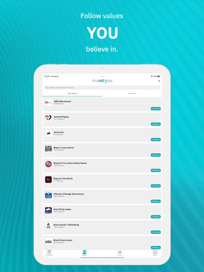 1. Neutrality - We are not here to tell you what values you should believe in. All values in the app are created and maintained by our user community. If you do not see a value to support, create it!