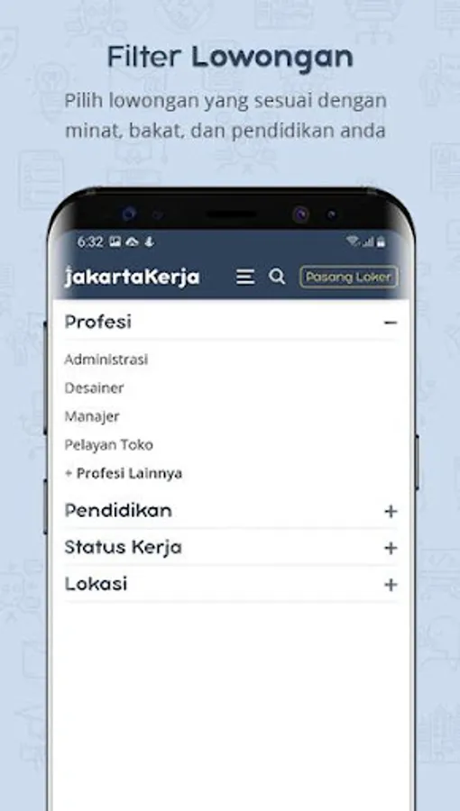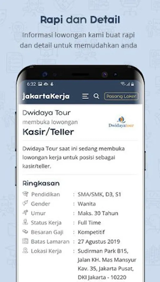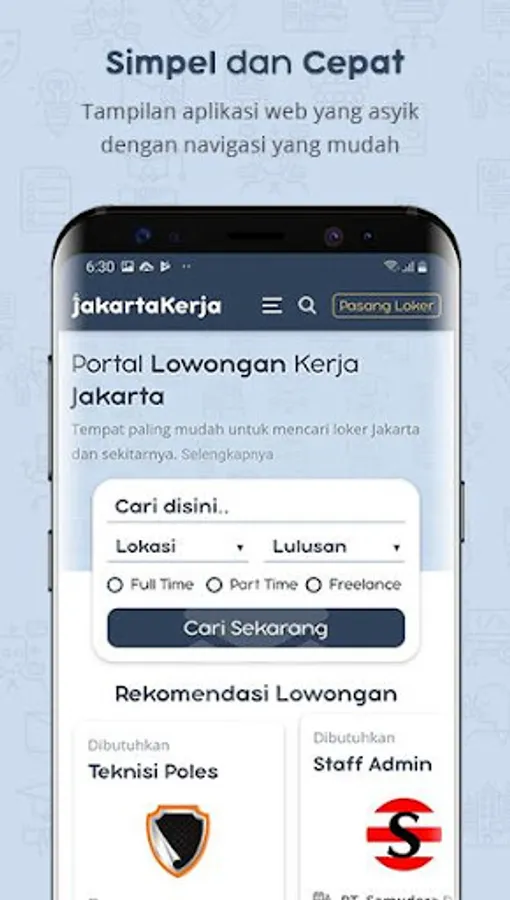 This application is designed with a simple design, rich in features, and has a small download size so you don't need to worry if the JAKARTA LOKER application will fill the storage space on your smartphone.