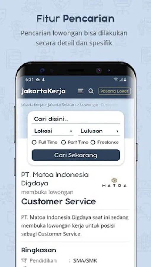 Come download the JAKARTA LOKER app now to start looking for the latest vacancies that match your talents and interests.