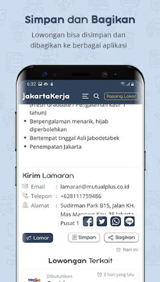 - Application button that will make it easier for you to apply via email and whatsapp