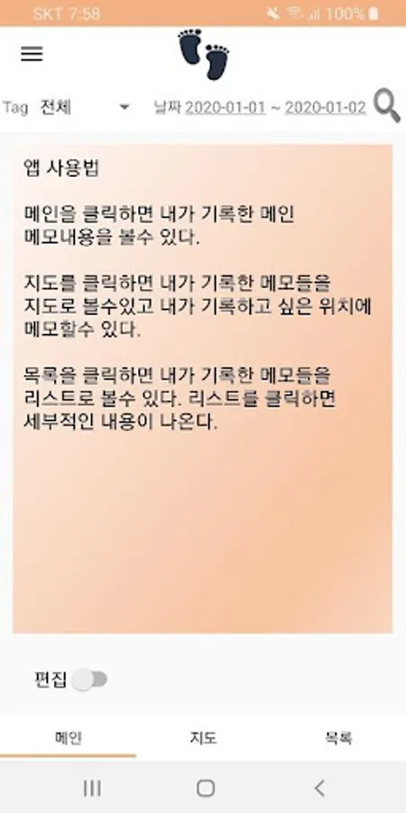 Main screen: A small notepad. Write what I want to do, such as what to do or schedule.