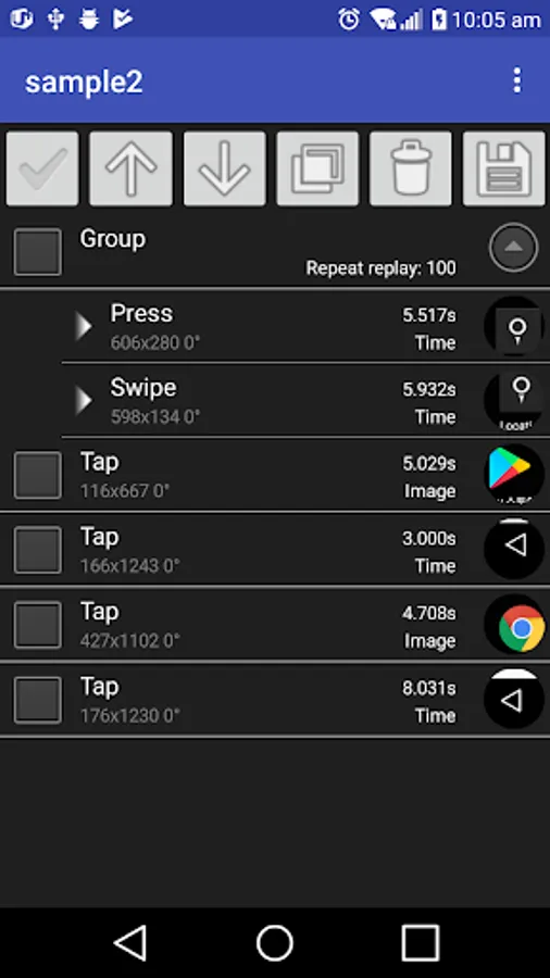 Record your touch and repeat as often as you like. You can edit macro easily with edit macro function.