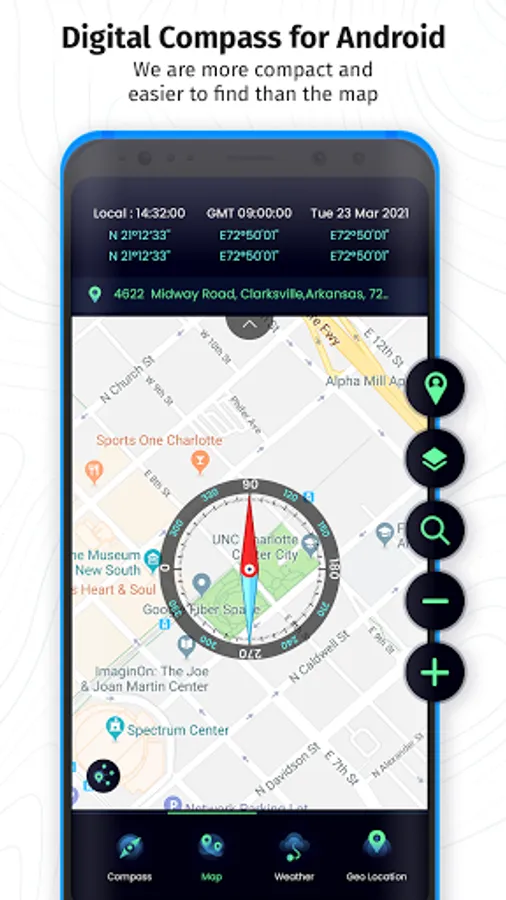 Compass is easy to use; just use it like a real compass. Compass app is more than just showing degrees and north, south, east, and west. I have designed Compass with user experience in mind, large numbers, and easy to read design. Digital Compass for Android - Smart Compass App have also added features like Compass, Map Compass, Weather, GEO Location.
