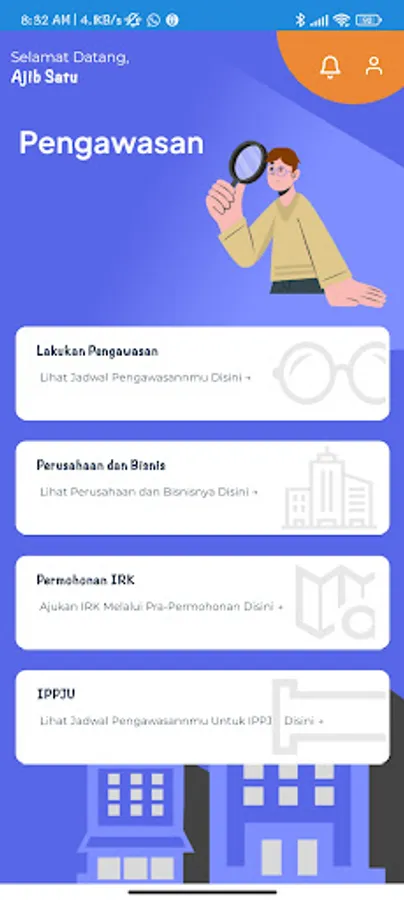 Aplikasi petugas yang digunakan untuk melakukan pengawasan data usaha.