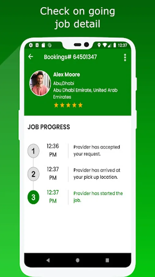 We know that you like the online tracking feature such as food delivery guy or taxi driver, and we brought the same into our app! You can track the service provider's live location in the app right after the service provider starts the service until the service provider reaches your home or office location.