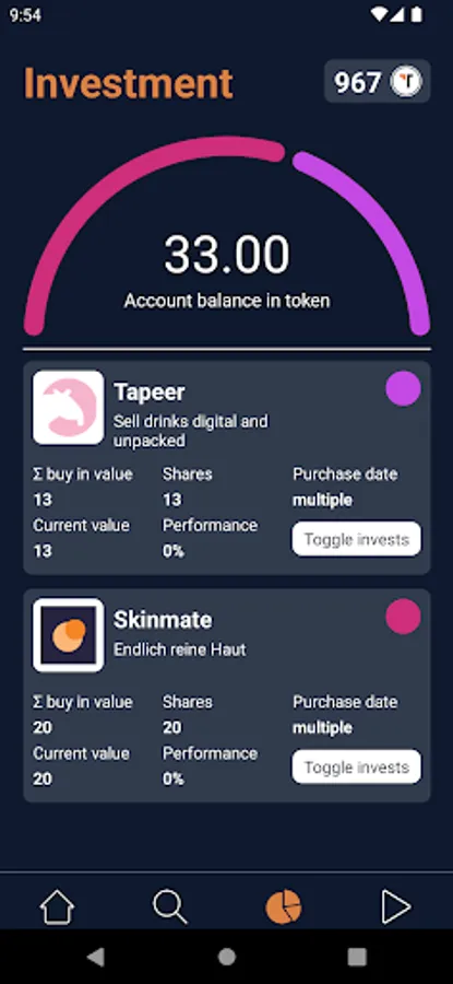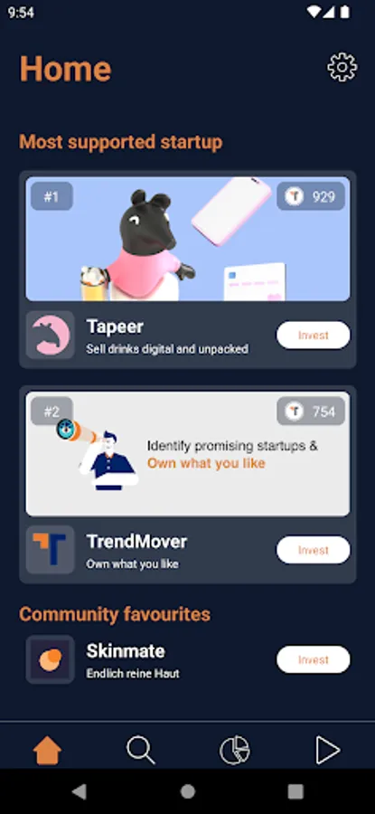 TrendMover makes pitch events more interactive. Via our app, viewers can invest tokens in start-ups during the show. Everyone receives 1000 tokens at the beginning of the show and distributes them to the presented startups according to their conviction. The funding amounts of the startups are then projected live and displayed in the feed. Viewers can still interact with the startup during and after the show and ask further questions.