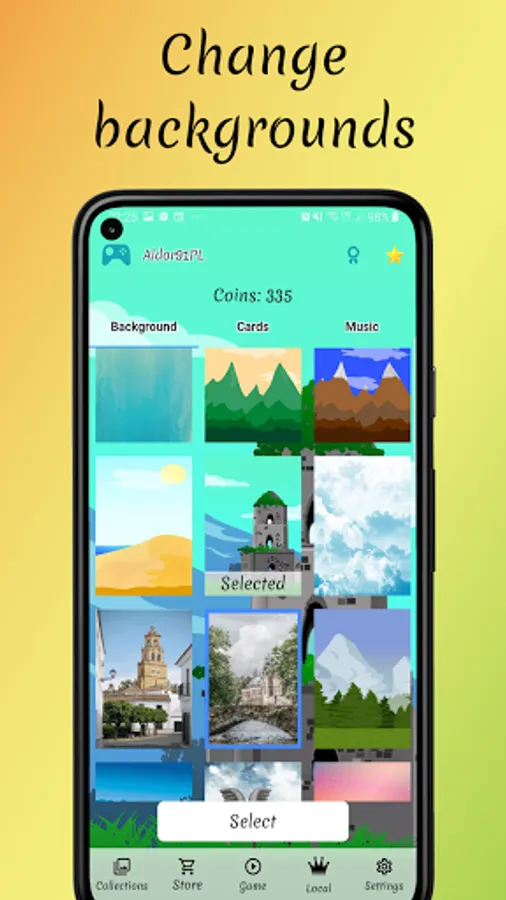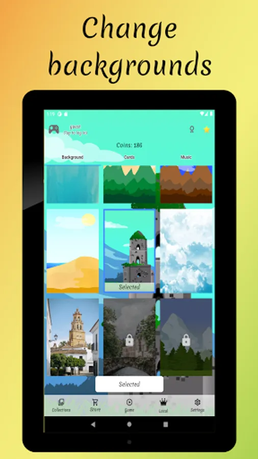 You can choose one of the multiple different colorful backgrounds. It's up to You to choose Your favorite one. Do you want to find cards in the sky? It's possible, or maybe You like to do it on the beach? It's also possible.
