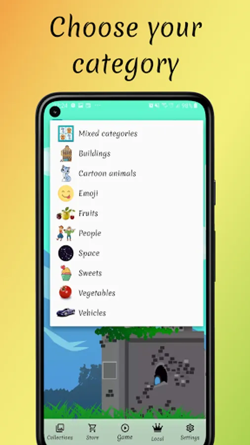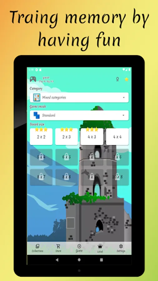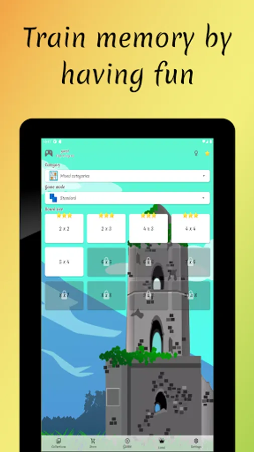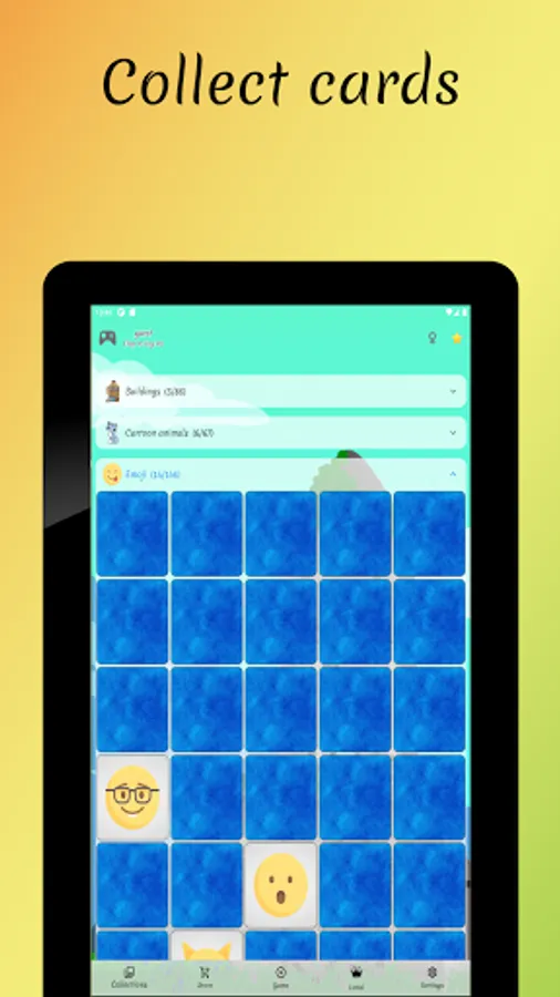 Like in a good memo game you can choose from multiple various card categories. Find your favorite one ale let colorful images on them help improve your memory.