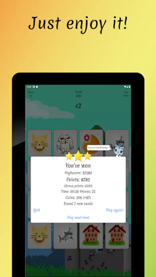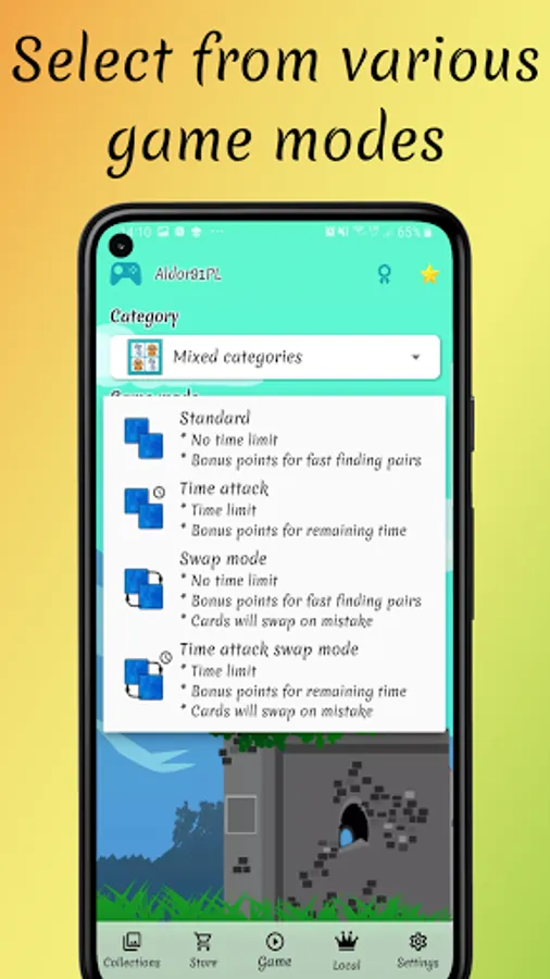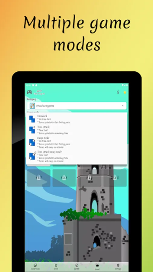 One is standard where you have unlimited time but by faster matching pairs you get more points. It's ideal for casual playing when you want to relax a bit or just train Your memory.