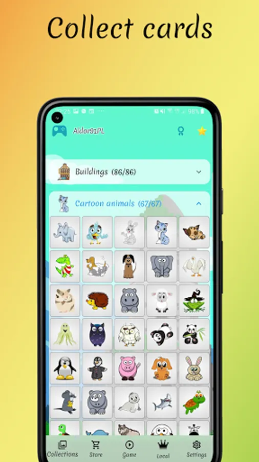 Each card you find in a winning game is stored in your collections. There are more than 500 cards to unlock.