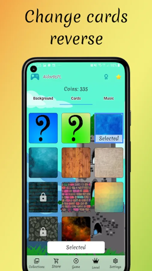 Some backgrounds and graphics on the reverse of the card are available from the beginning, but some need to be unlocked. You can do it by collecting coins by winning the game. Match cards, make fewer errors, and have a better time for more coins.