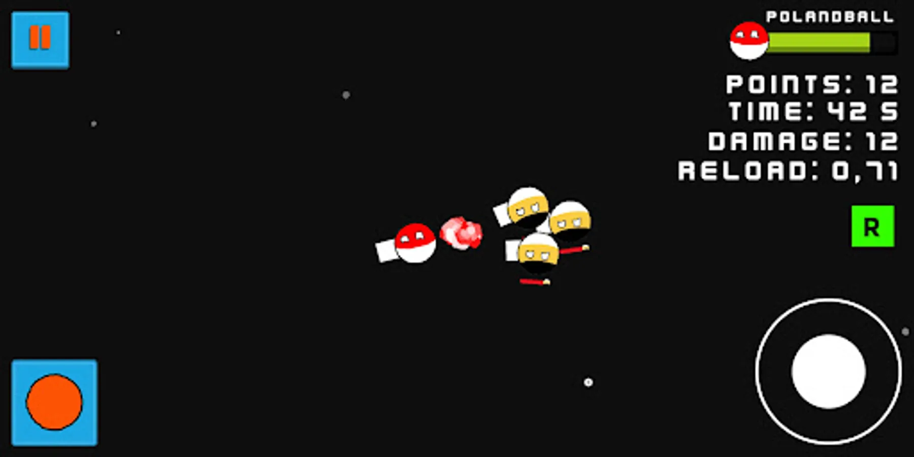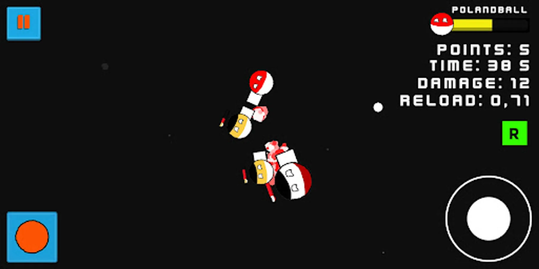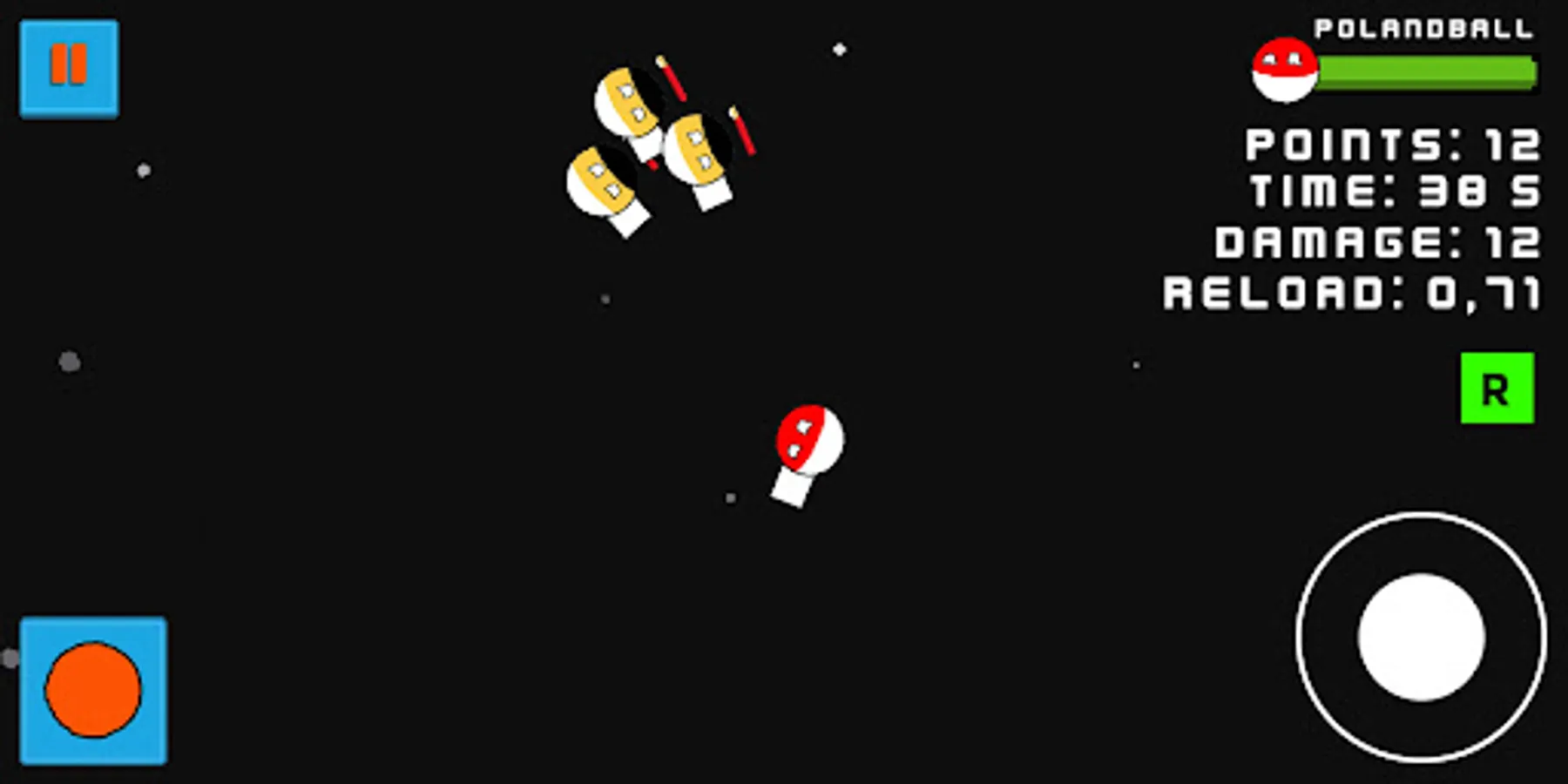 The cult Polandball after many unsuccessful attempts finally got into space with rocker TDI 1.900. Unfortunately, with him, also 3 other Polandball enemies from partitions times got into space: Prussia, Austrian Empire and Russian Empire. Gain points, boosts and aid kits to survive as long as you can!