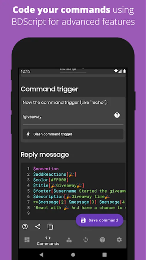 - Simple language designed for creating bot commands
