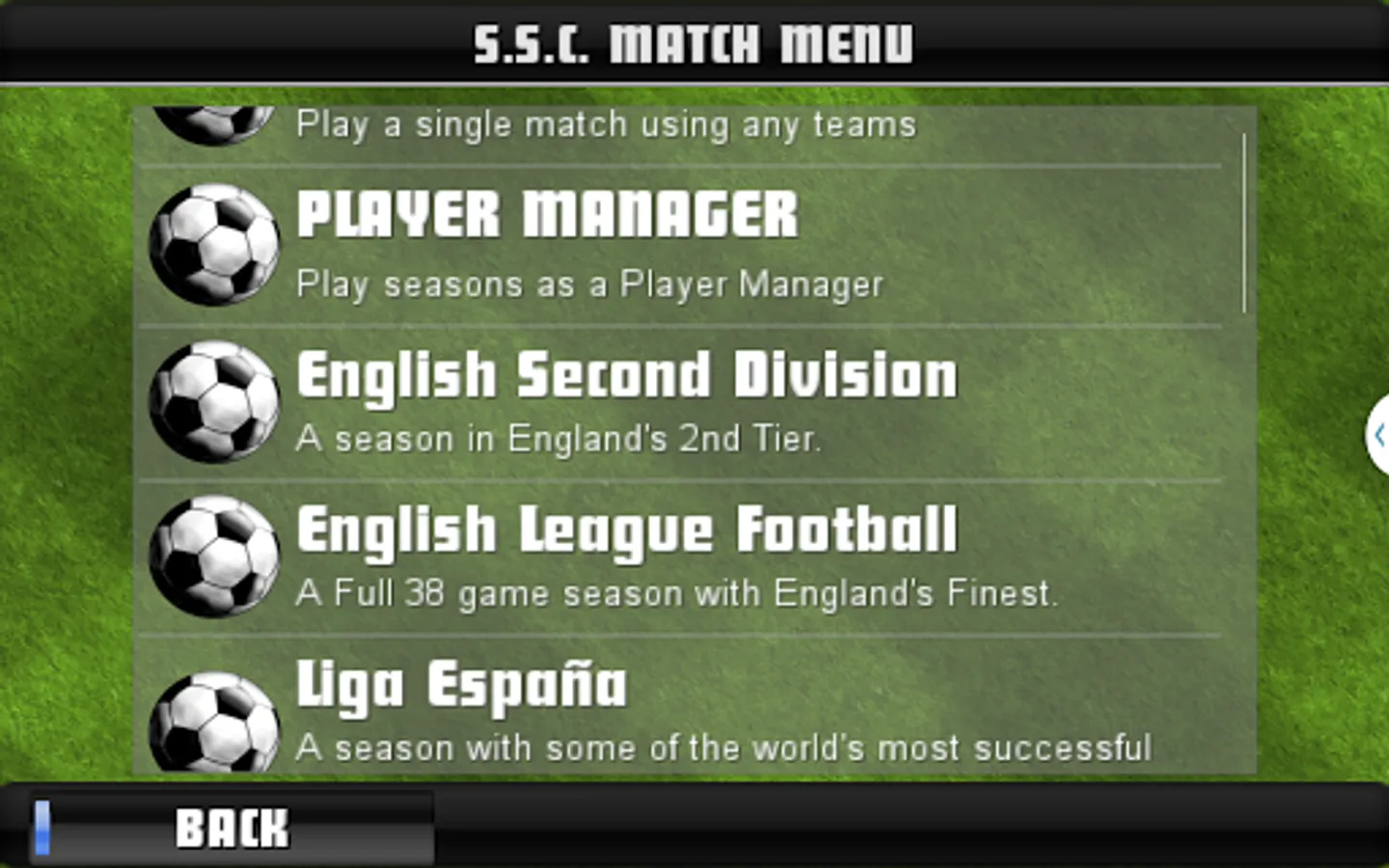 Player Manager Mode adds simple yet effective squad management; Buy and sell players, manage your squad's fitness levels, and even get job offers from more prestigious clubs if you're getting the results!