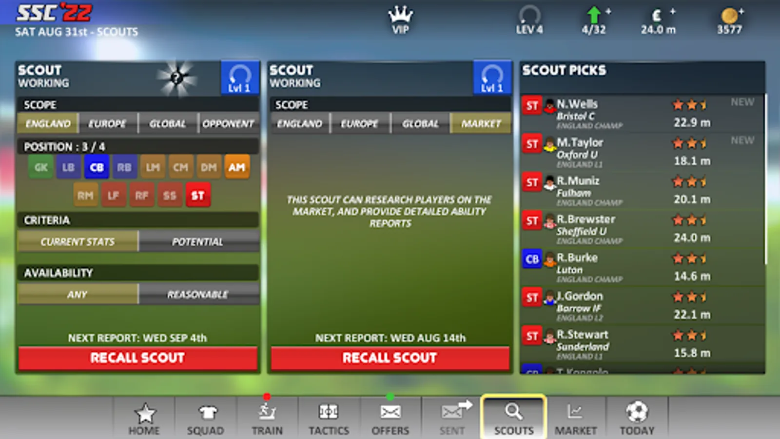Take part in a huge World of Soccer, with Continental championships and Domestic Cups as well as League play. Handle transfer negotiations, player training and scouting, or just play the matches!