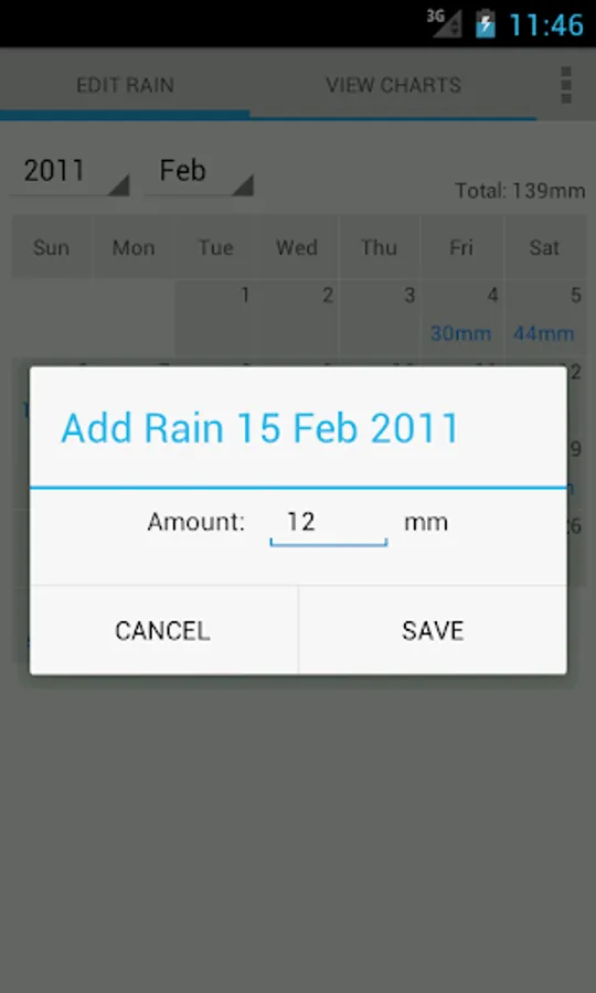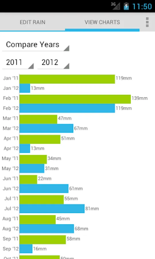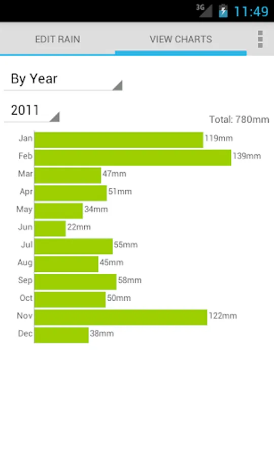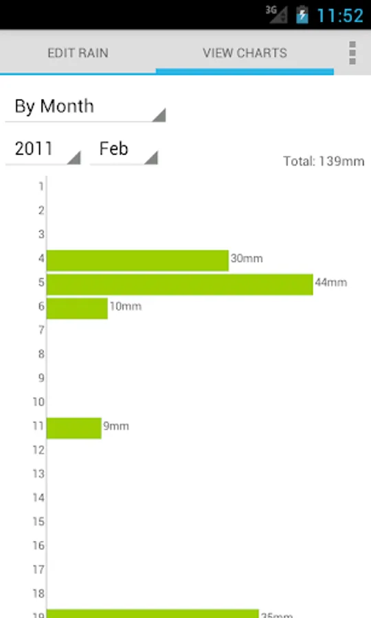 Rain Recorder is a simple app that allows you to log and chart your daily rainfall.