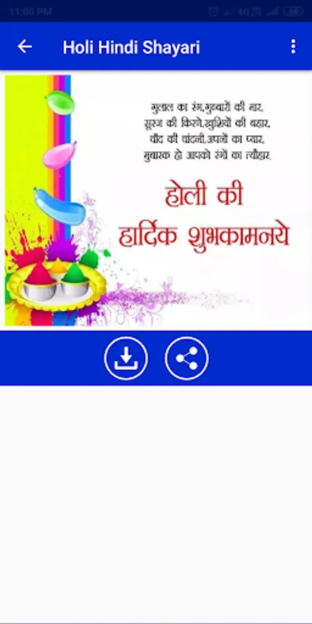 Holi Hindi Shayari Collection Application is an absolutely wonderful collection Of Holi Hindi Shayari & Wishes.