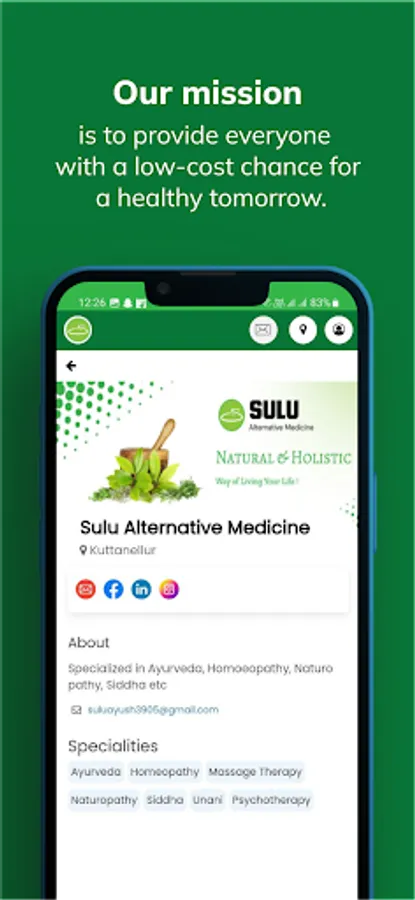 Alternative medicine is based on various philosophies and systems of healing that may have origins in ancient traditions, cultural practices, or non-Western medical systems. These approaches often emphasize holistic and natural principles, focusing on the balance and harmony of the body, mind, and spirit. Some popular forms of alternative medicine include: Homeopathy, Ayurveda, Siddha,Unani, Naturopathy, Yoga, etc. and also provide Counselling Sessions, Dietitian, Physiotherapy Consultation, Cosmetology