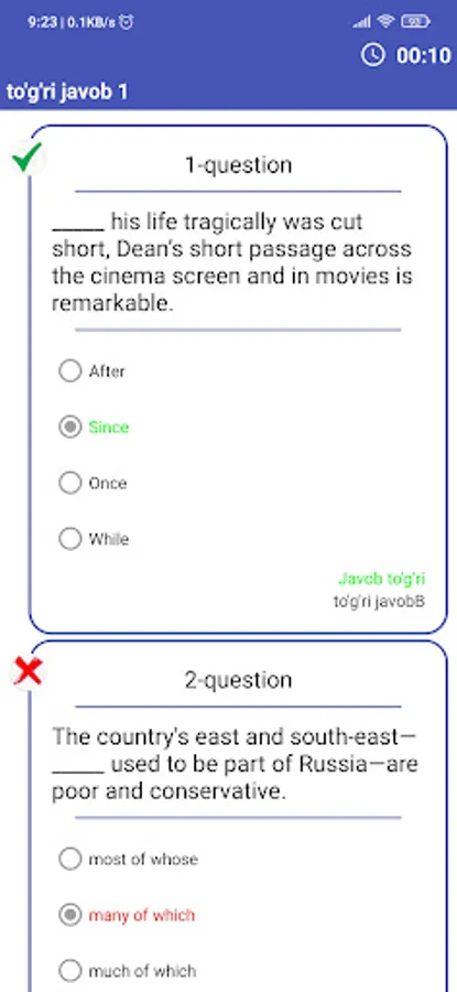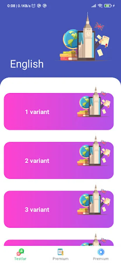 This app includes a set of themed tests from English grammar and options consisting of DTM tests. The premium part of the app is also available. you can also analyze your answers after completing each test, as well as submit your answers and see the results that others have collected.