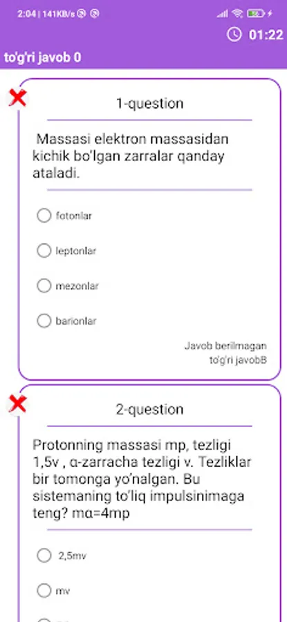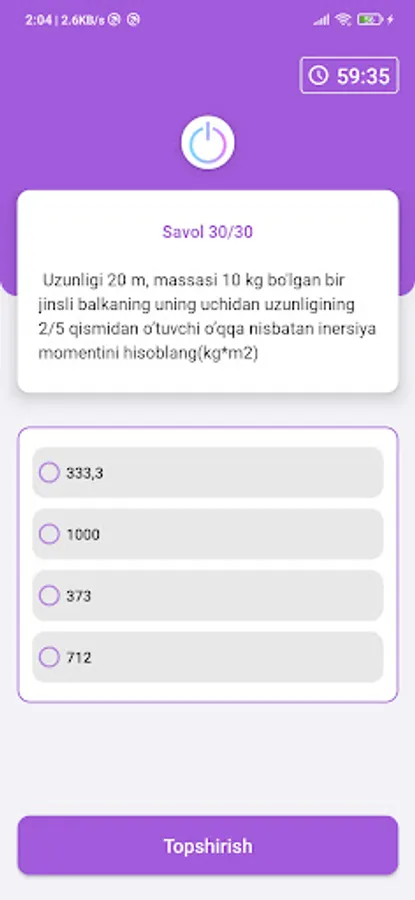 Ushbu ilovada matematika va fizikadan testlar toplami javoblari bilan jamlangan, foydalanuvchi savollarni yechib bo'lganidan so'ng javoblarini tahlil qila olish imkoniga ega, hamda premium turdagi testlar to'plamlari ham javoblari bilan birga jamlangan. Ilova online shaklda ishlaydi.