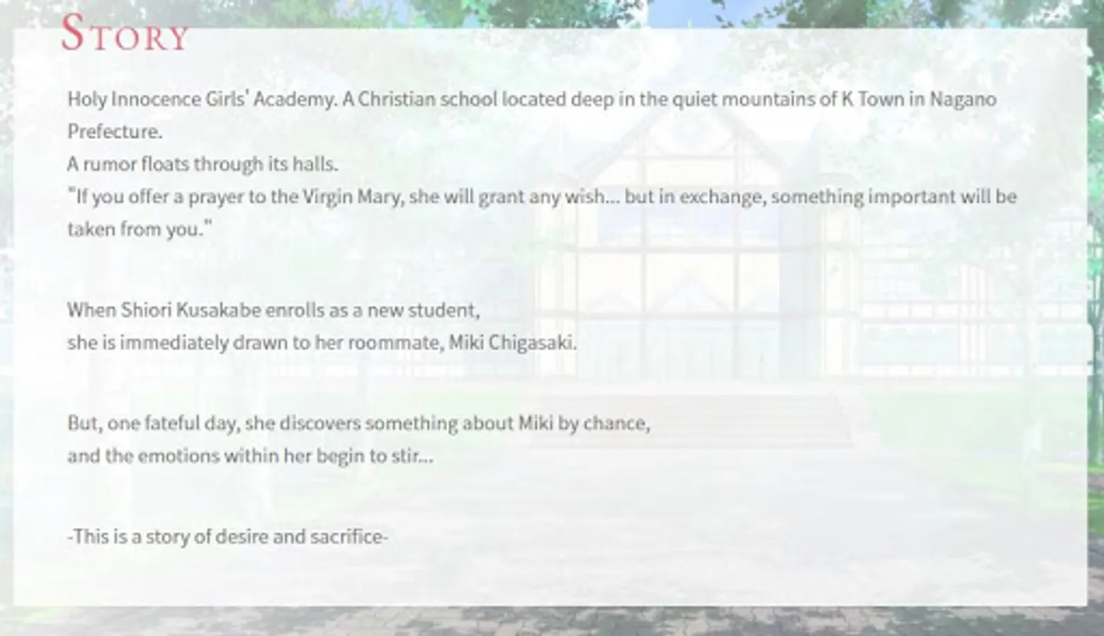[Fallen Maidens ~jalouse~ : Shiori's Story] is the first game from up-and-coming indie visual novel Brand, PurePurple.