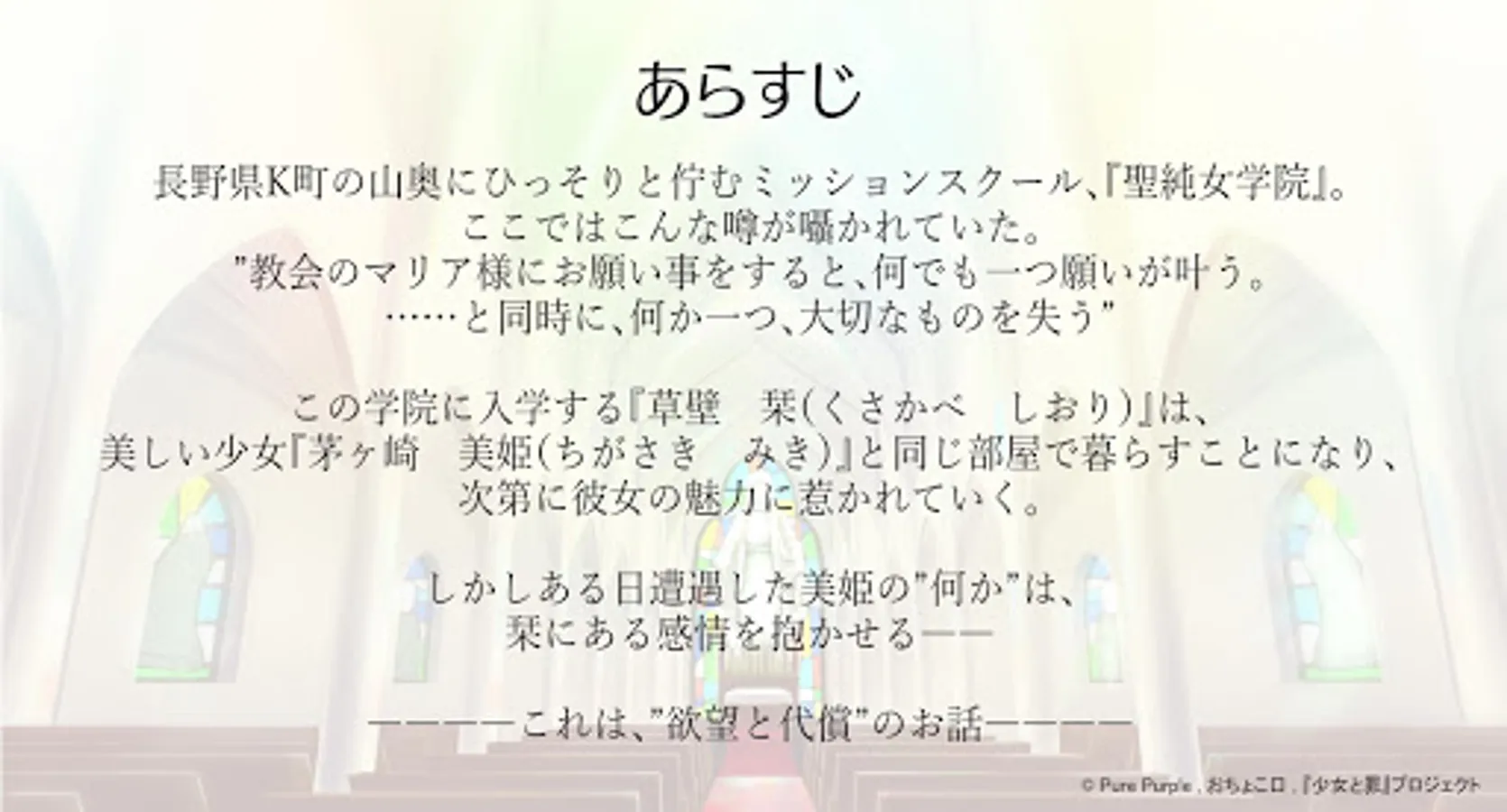 純文学”風”百合ビジュアルノベルゲーム『少女と罪 栞編 ~jalouse~』の体験版。