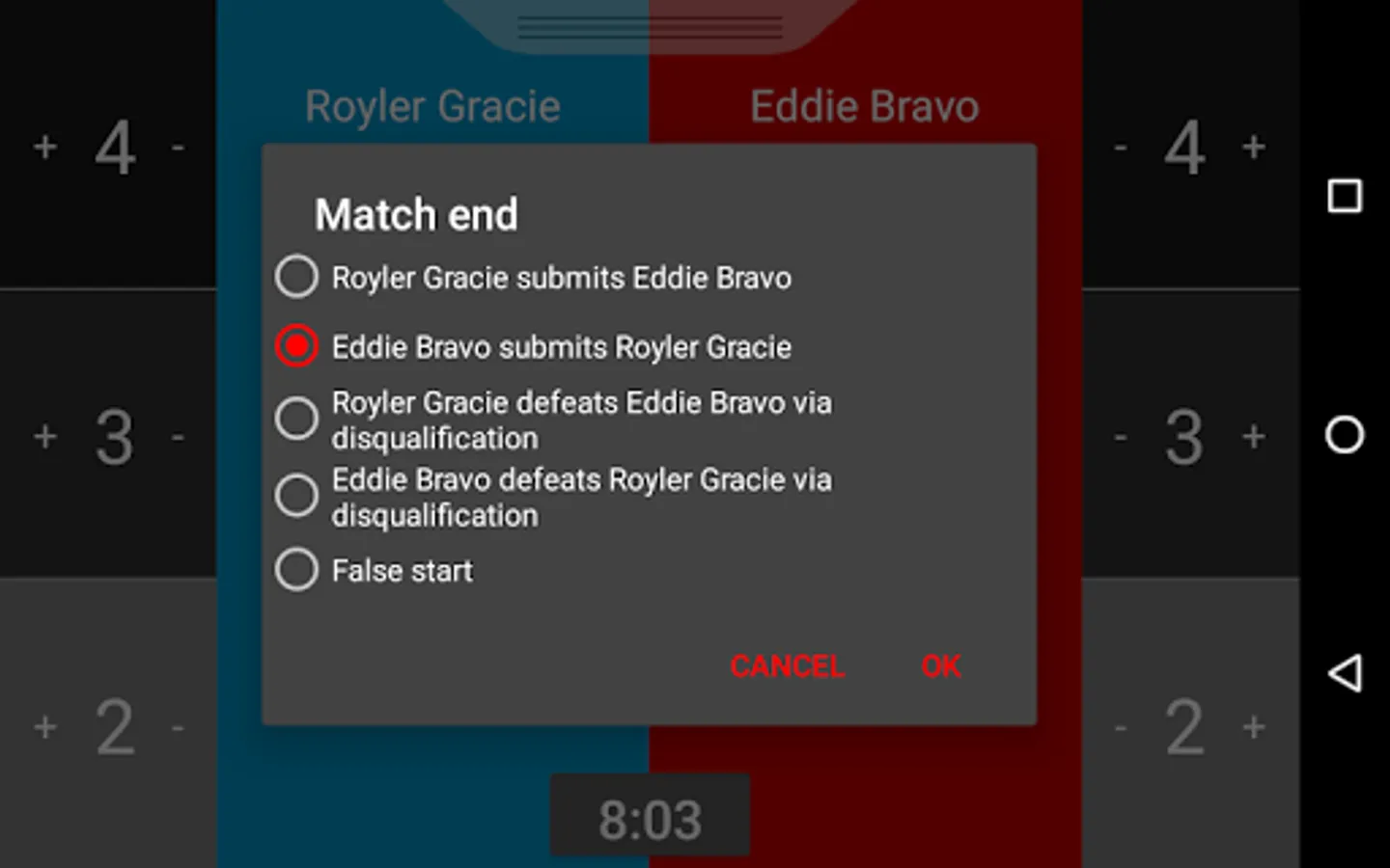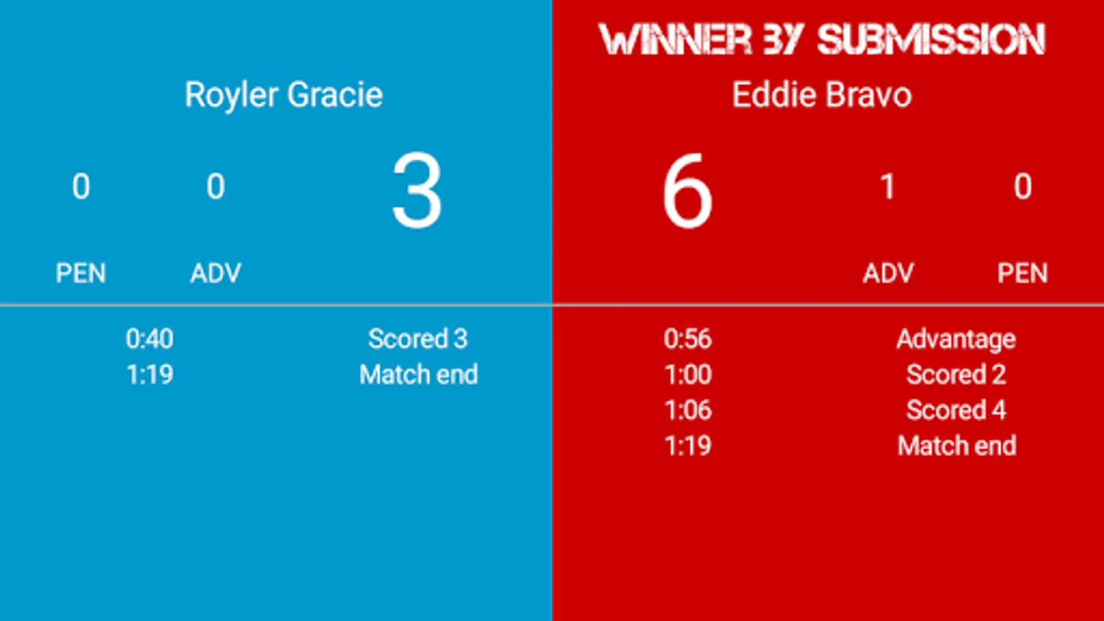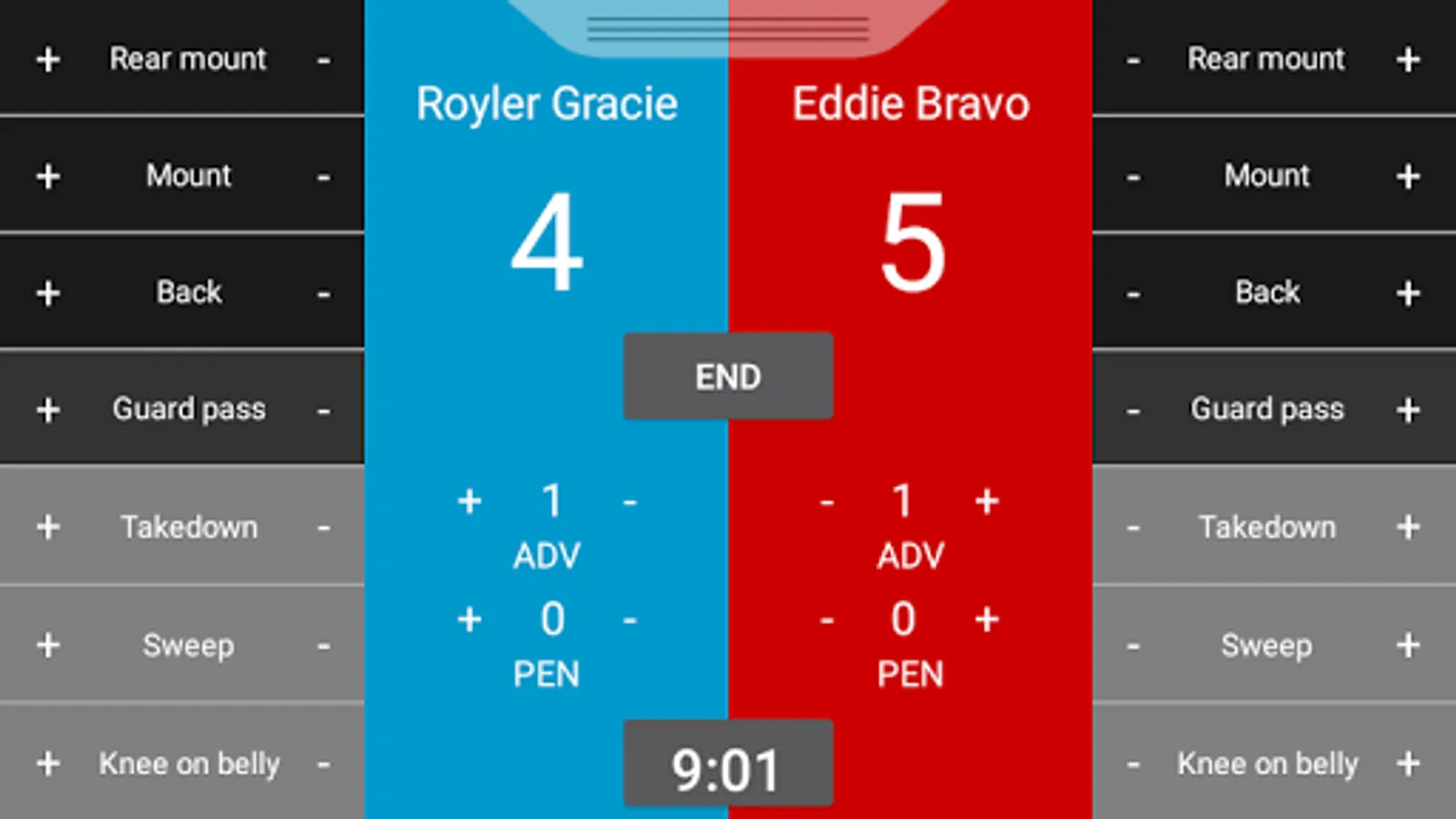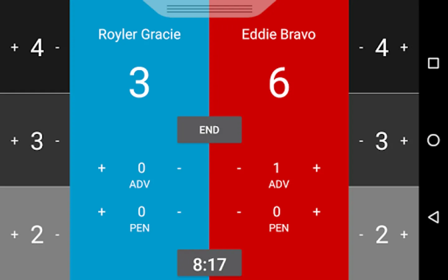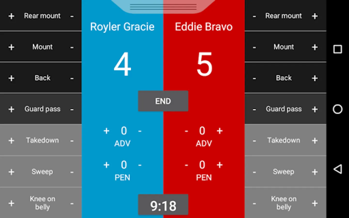 Jam It App presents BJJ Scoreboard - a simple application for your android mobile or tablet device that allows users to easily keep track of and score Brazilian jiu jitsu matches under the IBJJF Rule set.