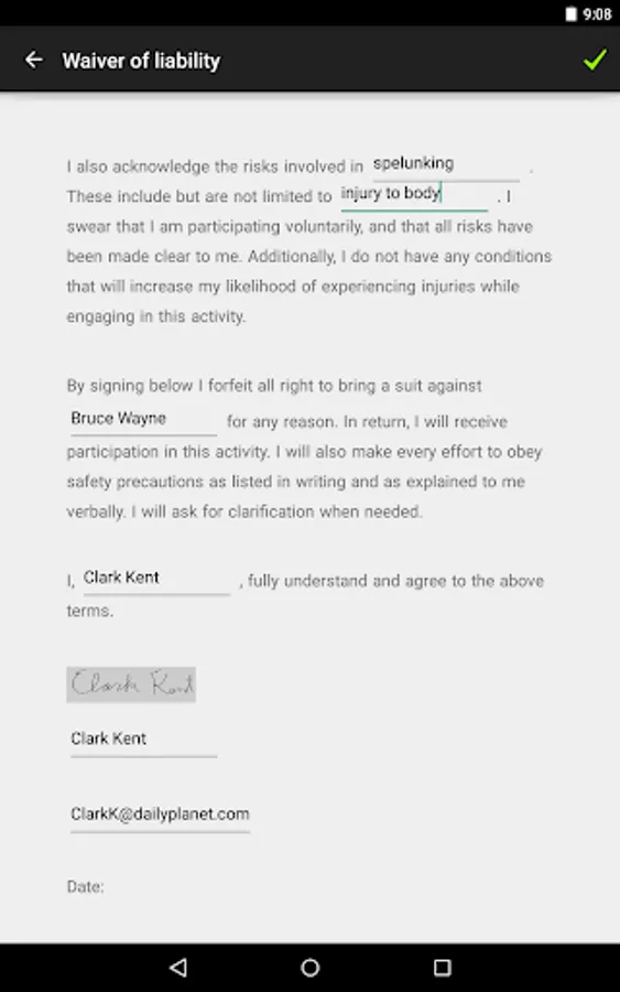 - Allows for easy contracts for multiple signers, and easily email a copy of the contract to each instantly - no more scanning or photo copying.