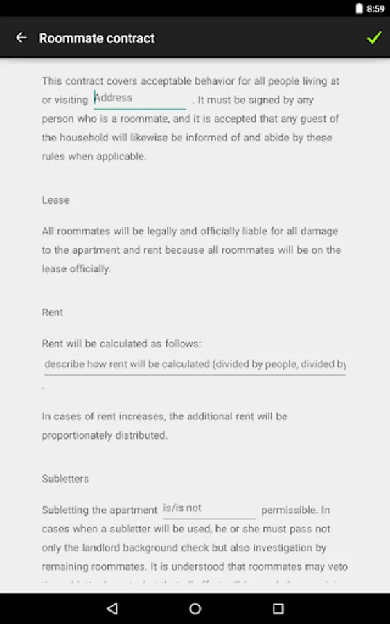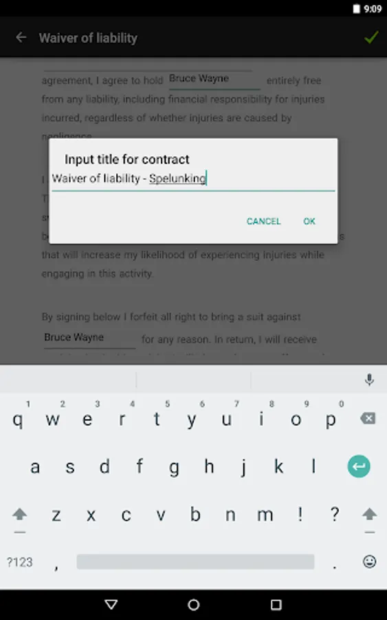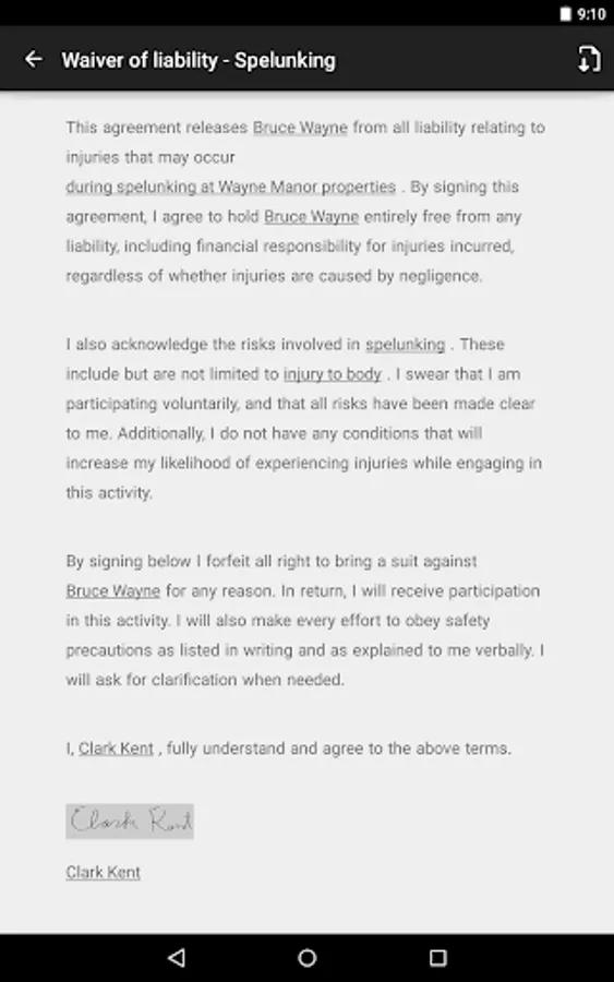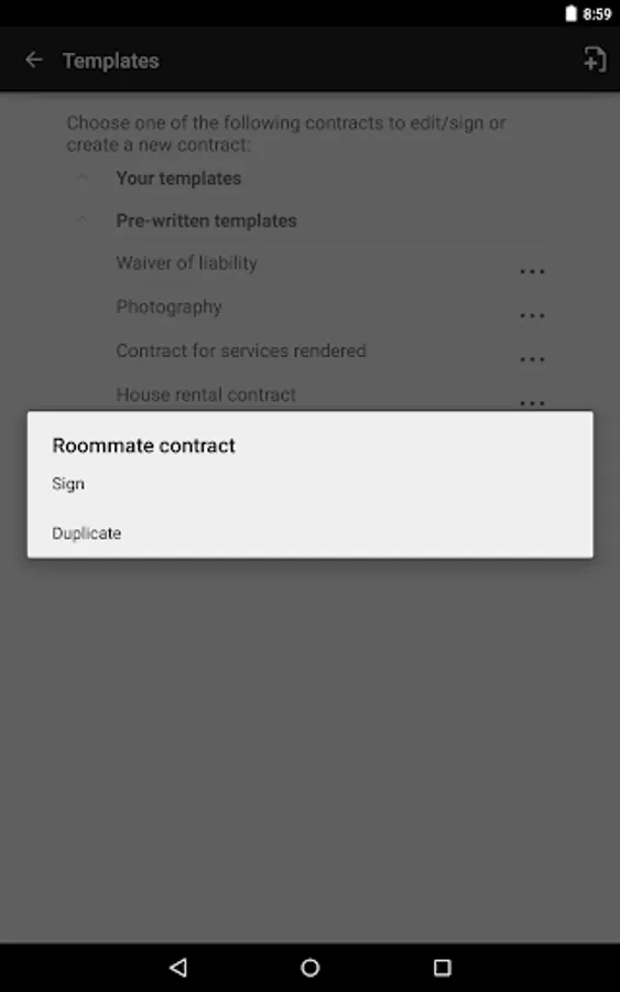 JAM Pact is a simple contract maker application for your Android device. This application allows for simple and quick creation, viewing, and electronic signing of contracts, waivers, and releases. Users are allowed to create or select from previously created templates and alter to their specifications. Once done, simply have the signatory sign using their finger or stylus, and save, with options to send the contract by e-mail, or save to your device as a pdf.