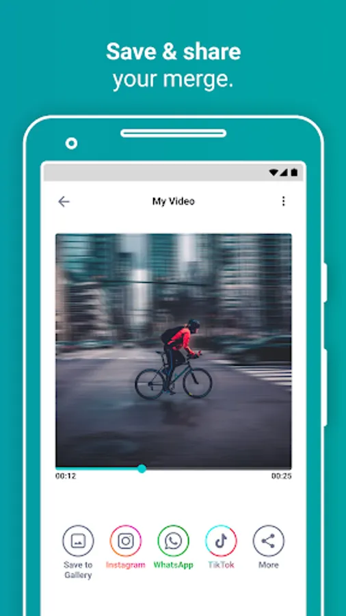 Save your created video clip to Gallery (in the Movies folder), or share it directly via TitTok, Instagram, WhatsApp, Facebook, Messenger, or else.