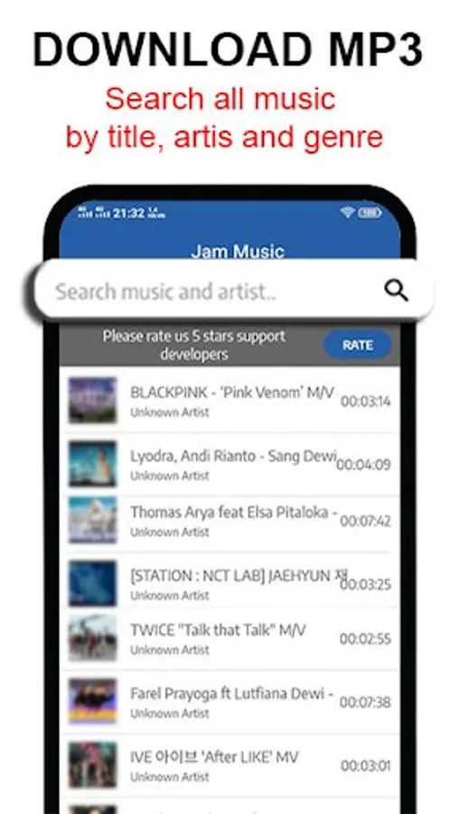 Search for Music and play music for free, without limits. You will find millions of songs and music, just search by artist, song name or album and start downloading the best quality music formats.