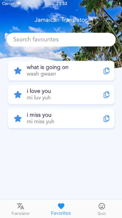 You can translate and share your translation with your favorite Instant Messaging app with friends, families or even Jamaican natives.
