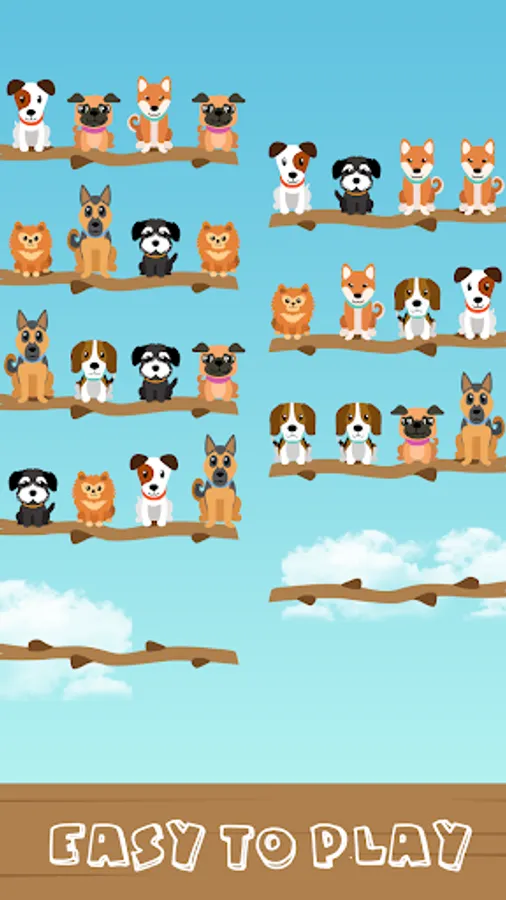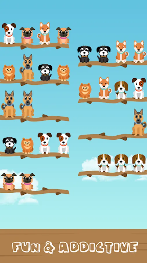 In this game, you'll find yourself at a bustling doggie hotel, teeming with various types of endearing puppies, each with their unique characteristics. However, they've become all mixed up and are on the wrong branches. Your mission is to assist these colorful dogs in finding their way back to their branches, alongside their furry companions. Here's how you can play this engaging game:
