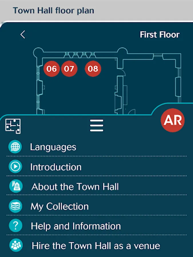 A floor plan will guide you to the places of interest around the Town Hall and the AR trigger locations.