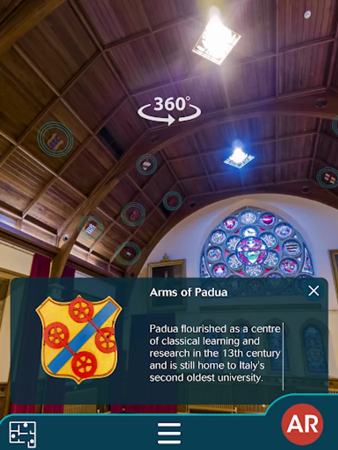 You can explore the heraldic plaques dotted around the ceiling of the Great Hall with our interactive 360 viewer to find out what they symbolise and where they all came from.