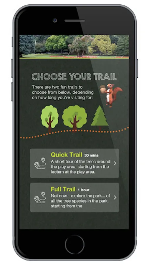 You’ll need to visit the Park to unlock the tree information. Choose between a short or long trail then follow the GPS map to find the trees.
