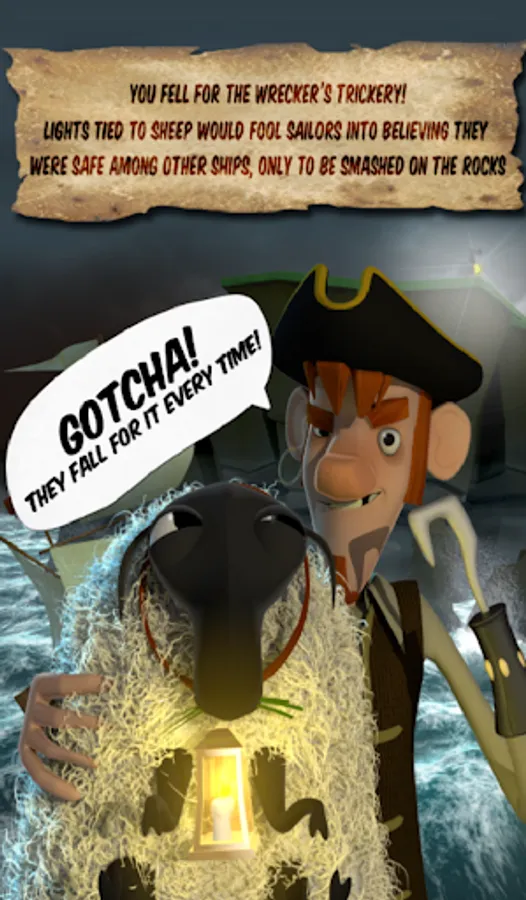 Restore lost lives by heading towards the lights of the coves to collect treasure chests but, beware, not all lights that glitter lead to gold… the wreckers may be just around the corner!