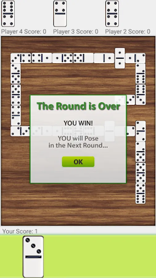 The first player to play all their dominoes is the winner of that game. The winner receives 1 point added to their score or 2 points for winning with a KEY CARD!