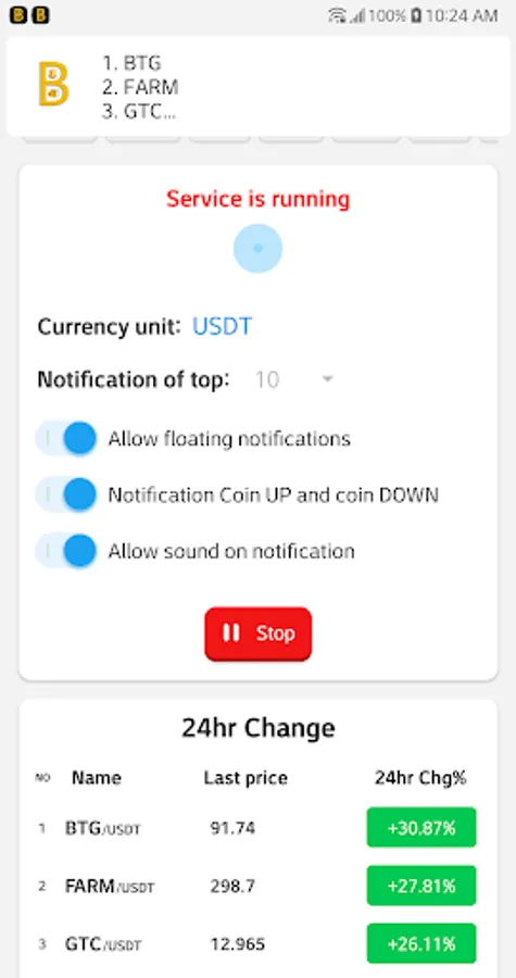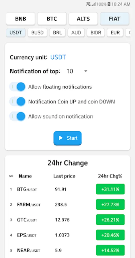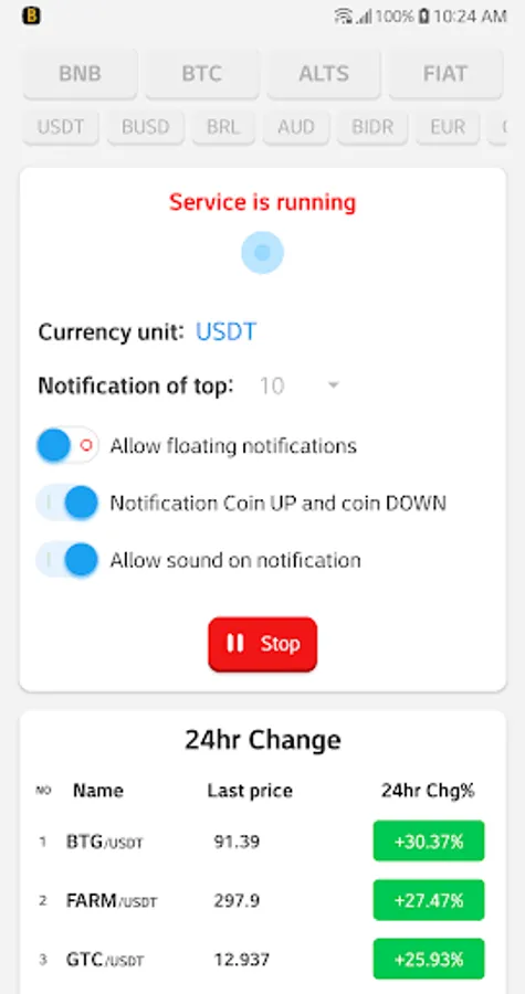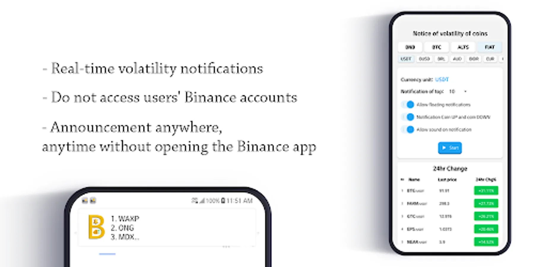 - Floating notifications when you don't open the Binance app, you can still monitor fluctuations.