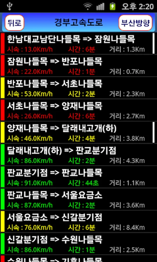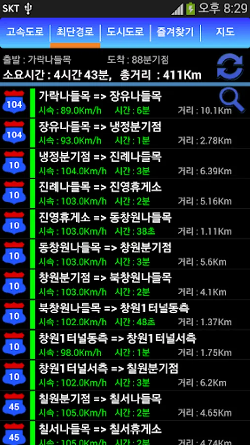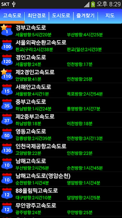Expressway, Seoul, Incheon, Bucheon, light, Anyang, Gwacheon, Ansan, Yongin, Shiheung, Busan, Daegu, Gwangju, Daejeon, Ulsan, Wonju, Cheonan, Jeonju, Gunsan, Pohang, Changwon and Jeju province in major cities such as real-time traffic information.
