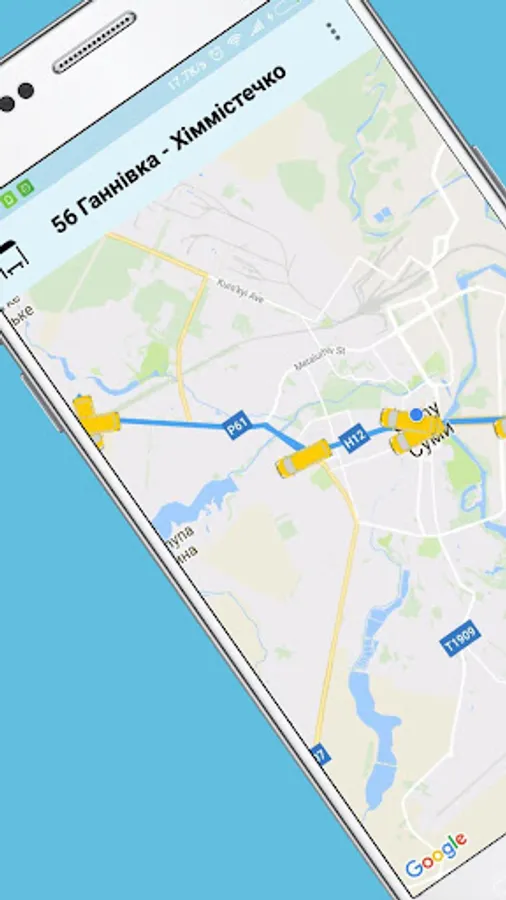 Use DeMarshrutka very easily. You must enable the Internet to launch a mobile app, and then you will see a map of Sumy. The map marked street names, landmarks, basic facilities and public transport images printed blue.
