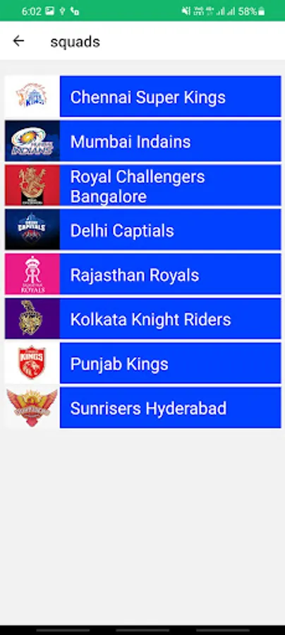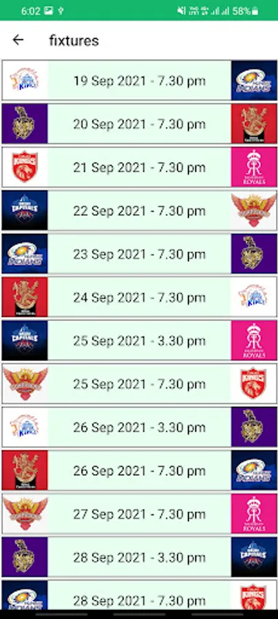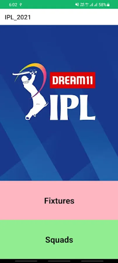 This app shows the fixtures of ipl 21 . and also shows the squards of respective team.