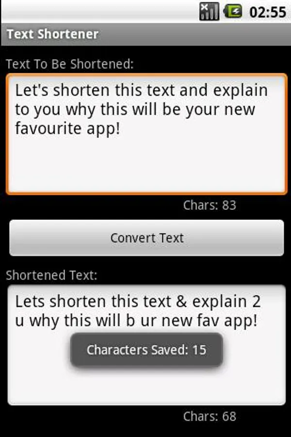 For use when having to cut down text for an SMS message or tweet. Enter your message, press convert and see how many characters you can save by dumbing down your language.