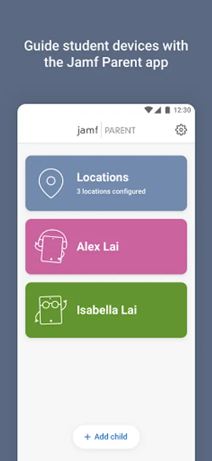 Jamf Parent empowers parents to manage their children's school-issued devices. Using the intuitive interface, you can restrict which apps your child can access on their device, receive notifications when your child arrives at school, and schedule homework time or bedtime by using Device Rules to allow or restrict certain apps.